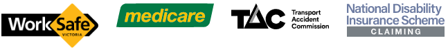 The Government Schemes that we have available are Medicare, Department of Veteran’s Affairs, TAC, Worksafe Victoria, Workcover Queensland, ICWA and NDIS.